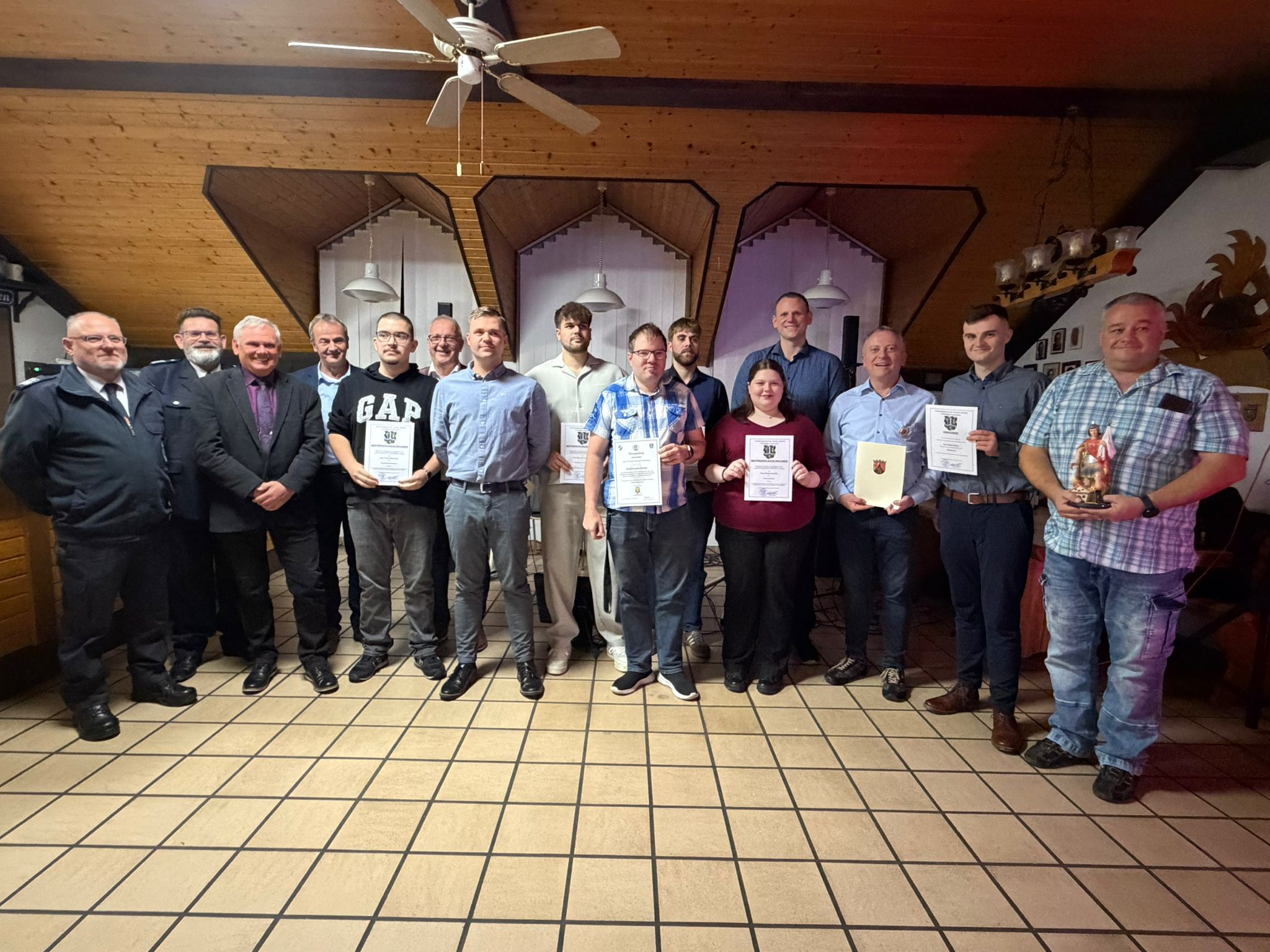 Die Feuerwehrmannanwärter Jona Fritzler und Moritz Wilhelm wurden zu Feuerwehrmännern ernannt. Zu Oberfeuerwehrmännern wurden Fabian Buck und Lukas Geyer befördert. Mario Dick trägt ab sofort den Dienstgrad Hauptfeuerwehrmann. Lukas Vollmar wurde zum Löschmeister befördert. Dominic Rummler erhielt die Beförderung zum Oberlöschmeister und Lukas Manck wurde nach erfolgreichen  Verbandsführerlehrgang an der Feuerwehrschule zum Hauptbrandmeister befördert.