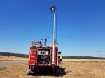 Das Fahrzeug verfügt über eine Schnellangriffshaspel und eine zuschaltbare Hochdruckanlage mit 50 m formstabilem Schlauch. Das Fahrzeug ist mit einem pneumatischen Lichtmasten mit zwei 1000 Watt-Strahlern, einem tragbaren Stromerzeuger, Material zur mobilen Beleuchtung, einer Tauchpumpe und einem Trennschleifer ausgestattet. |