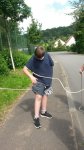 Bei der Wanderrallye, die rund um und durch Kirrberg ging mussten die Jugendlichen Geschlichkeitsspiele erledigen aber auch feuerwehrtechnische Dinge wurden ihnen abverlangt. Die Jugendlichen hatten dabei sichtlich Spaß. Insgesamt nahmen neun Jugendfeuerwehren an der Wanderrallye teil. Die Jugendfeuerwehr Schönenberg-Kübelberg war mit zehn Jugendlichen vor Ort, die in zwei Gruppen zum Wettbewerb antraten.