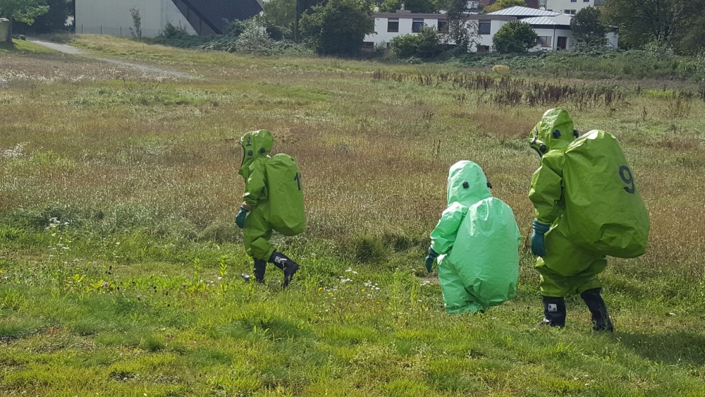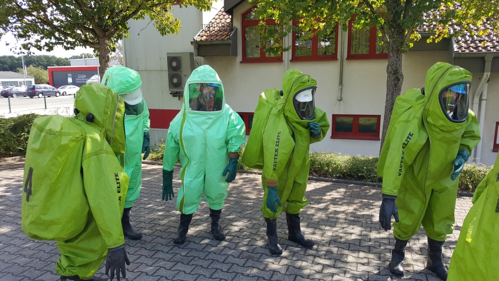 Alle Feuerwehrkameraden besitzen nun die Befähigung bei Gefahrgutunfällen mit dieser besonderen Schutzkleidung im Gefahrenbereich tätig zu werden.